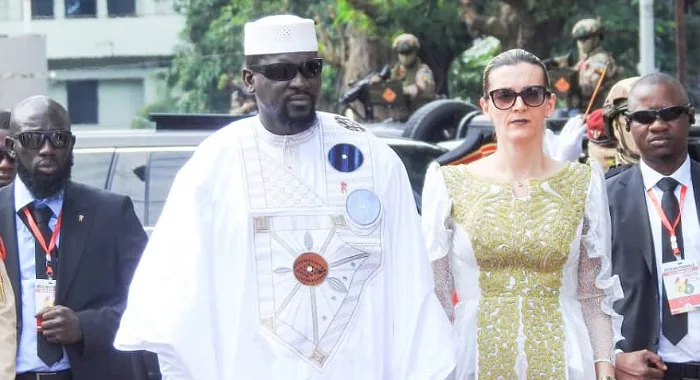 Le général Mamadi Doumbouya à la Place des Martyrs, accompagné de son épouse, Lauriane Doumbouya