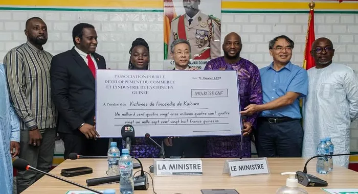 L’association pour le développement du commerce et l’industrie de la Chine en Guinée a apporté, ce vendredi 12 janvier 2024, son secours aux victimes de l’incendie du dépôt des hydrocarbures de Kaloum.