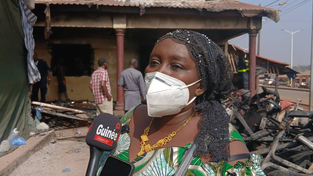 « J’étais à Dubréka lorsqu’on m’a appelée en me disant que le magasin avait pris feu. Et dès que je suis arrivée, d’après les premières informations que j’ai reçues, il y a des vendeurs de carburant devant notre magasin ici. La dame est venue installer les enfants pour procéder à la distribution du carburant dans les bidons. En ce moment, il y avait deux petits qui étaient en train de jouer avec le carburant. L’autre tenait une allumette et alluma l’allumette. Donc, quand le feu s’est déclenché, il a fui. Entre-temps, la dame responsable de ces enfants-là est directement rentrée à la maison. »