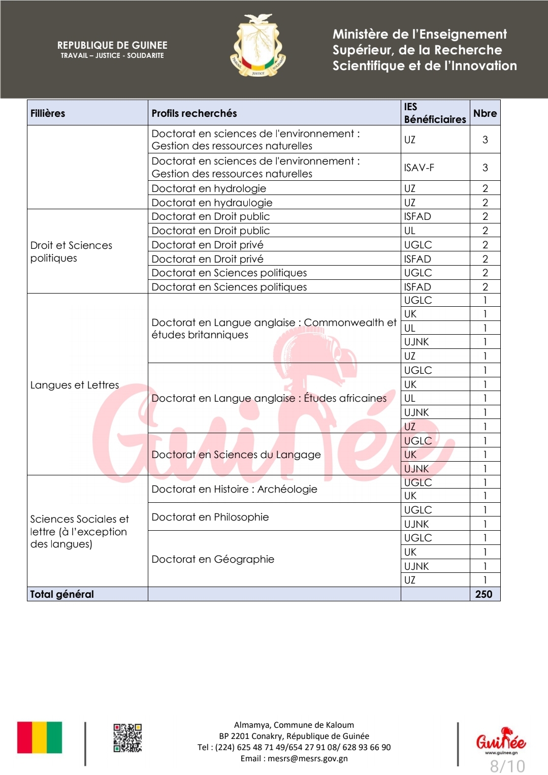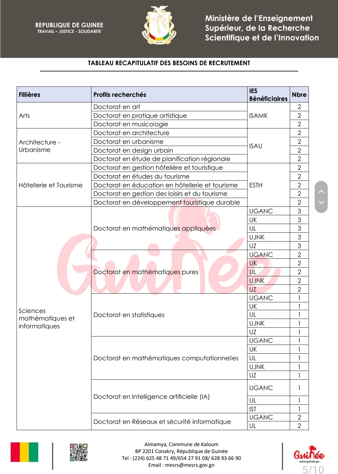 Le recrutement de 250 enseignants-chercheurs, guinéens ou étrangers, est une mesure urgente et essentielle pour améliorer la qualité de l’enseignement supérieur en Guinée. Cette initiative vise également à stimuler la recherche scientifique et à promouvoir l’échange interculturel. La réforme de l’enseignement supérieur en Guinée est en marche, et ce recrutement massif constitue une étape déterminante vers un avenir académique plus prometteur pour le pays.