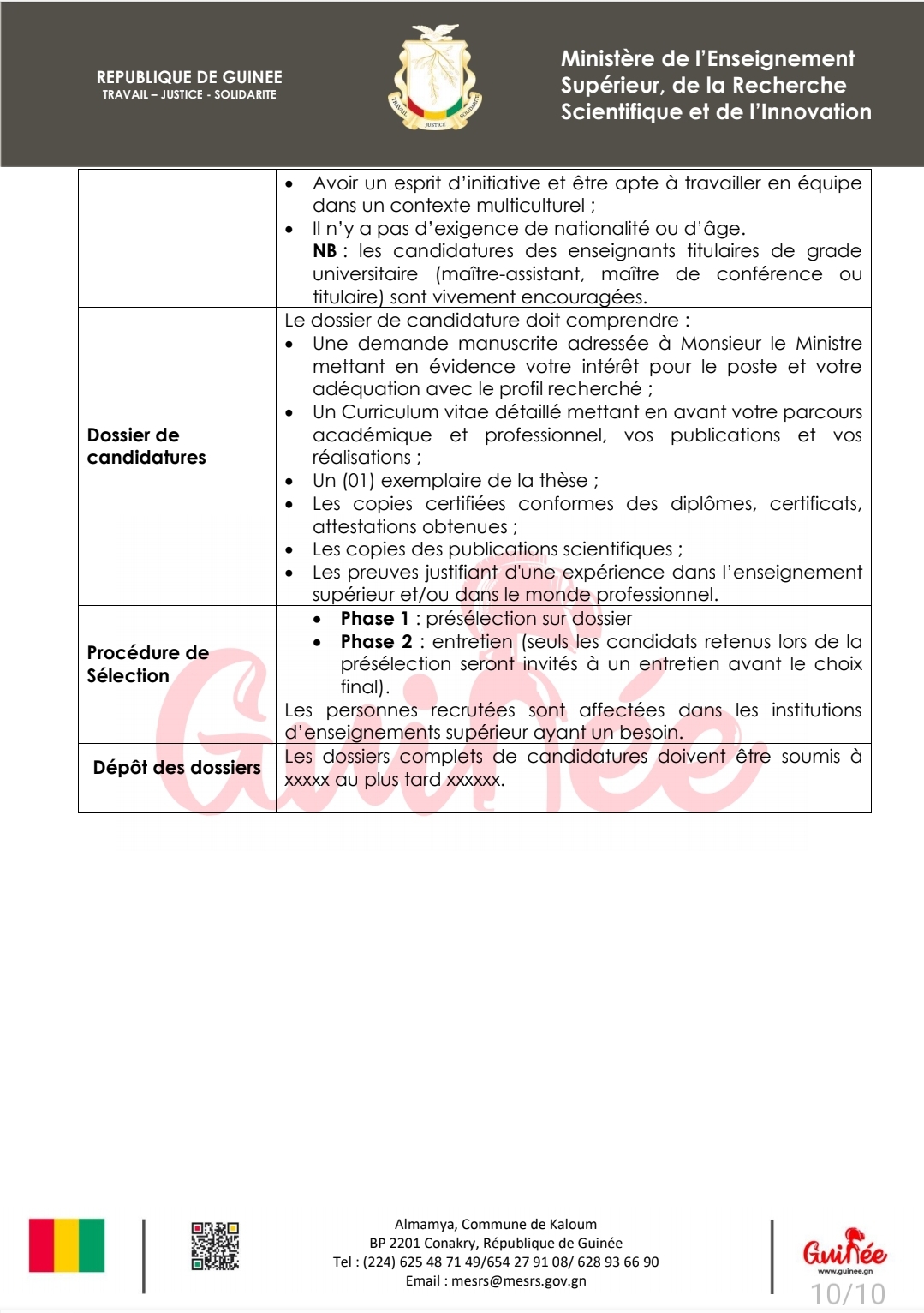 En offrant des opportunités d’emplois attractives, cette initiative vise à attirer des talents et à retenir les compétences en Guinée. Les enseignants-chercheurs guinéens seront encouragés à poursuivre leur carrière dans le pays, tandis que des experts étrangers contribueront à former la prochaine génération de chercheurs guinéens.