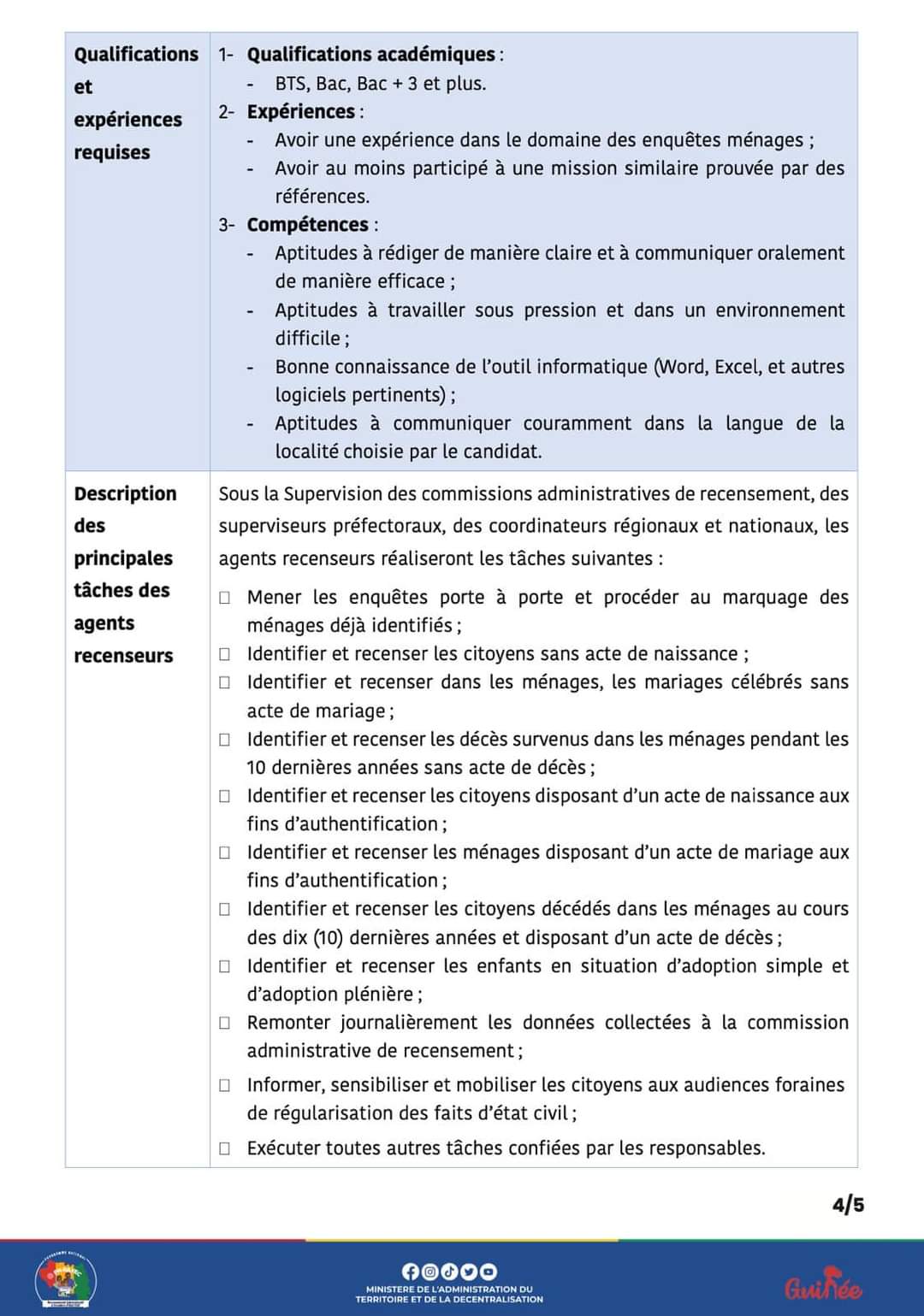 Les candidats doivent déposer une lettre de motivation et un CV à travers le site : www.ravec.matd.gov.gn.