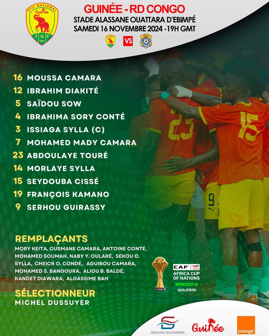 Dans quelques heures, le Syli national de Guinée sera en face de la Tanzanie, pour le compte de la sixième et dernière journée des éliminatoires de la CAN 2025, qui se déroulera au Maroc. Pour cette rencontre cruciale, le sélectionneur guinéen a misé sur la même composition qu’en face de la RDC.