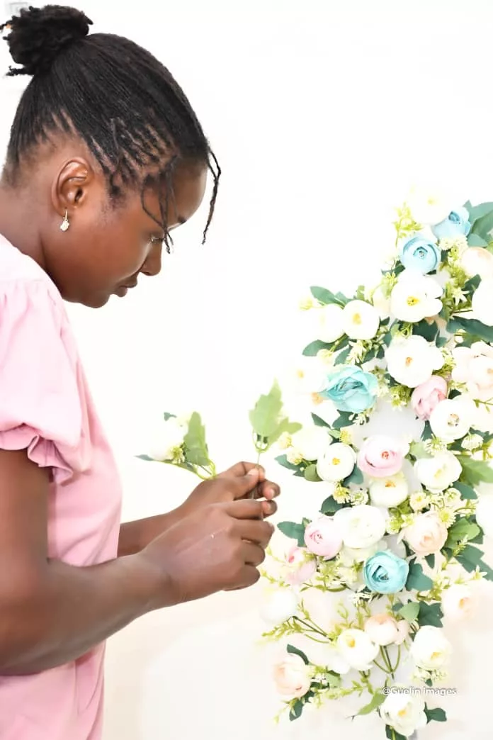 “ Depuis toute petite, lorsque j’assistais à des cérémonies et que je voyais les décorations, j’admirais beaucoup cet art. C’est ainsi que j’ai développé ma passion pour l’événementiel et que je me suis lancée dans ce domaine. Pour commencer, je m’inspire des images d’autres professionnels. Pour me perfectionner, j’ai suivi des formations.”