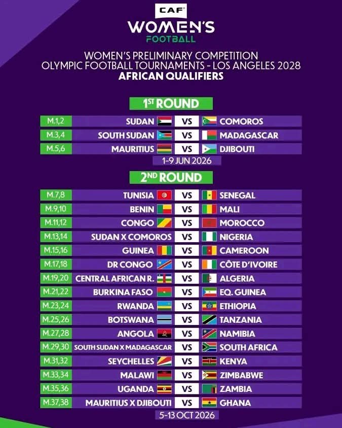 Selon le programme dévoilé par la CAF, le format de cette compétition prévoit cinq tours de qualification pour deux équipes qualifiées de la zone Afrique à la phase finale des JO 2028 à Los Angeles, aux États-Unis.
