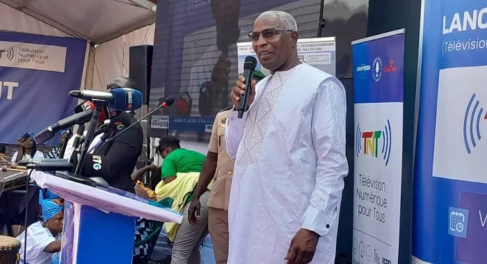 Présidant la cérémonie de lancement de la Télévision numérique pour tous (TNT),…